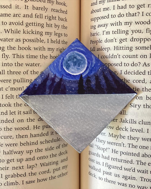 Midnight forest & Moon- Mini/small hand painted corner bookmark